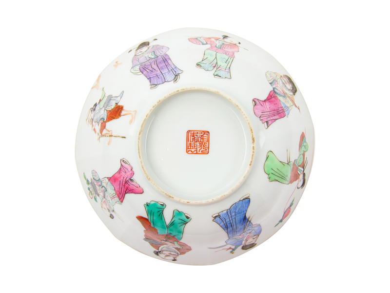 of flori-form enameled with figures, the underside bearing a Daoguang four-character iron red mark and of the period.
