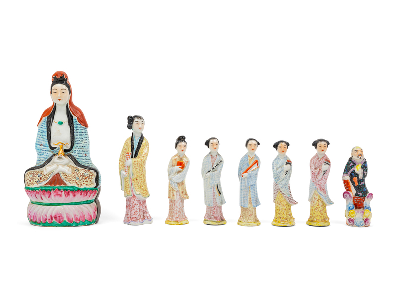 A Group of Eight Chinese Famille Rose Porcelain Figures