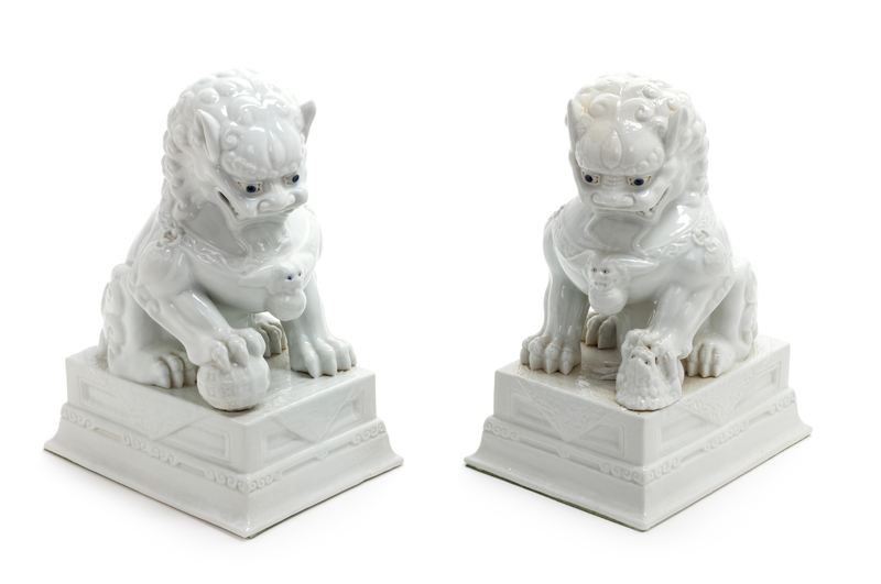 A Pair of Chinese Blanc-de-Chine Figures of Fu Lions