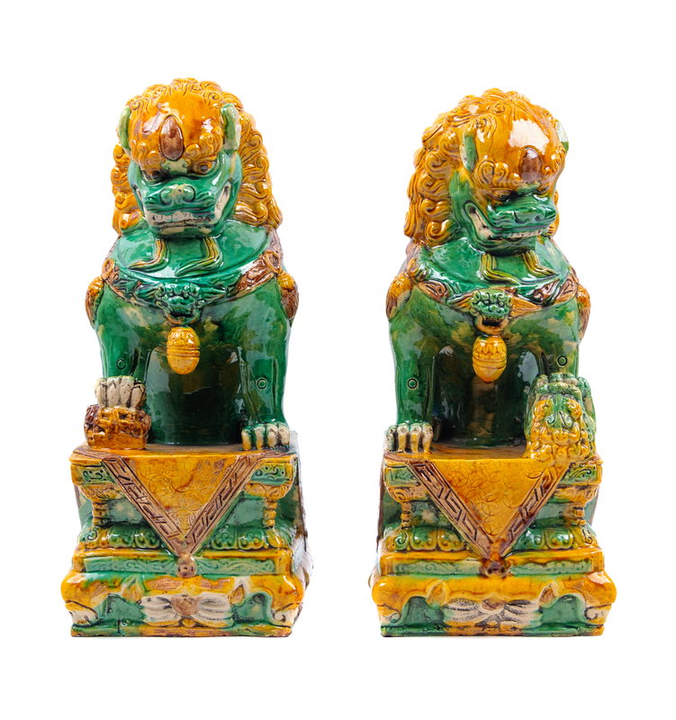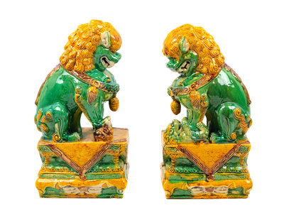 A Pair of Chinese Sancai Glazed Porcelain Fu Lions