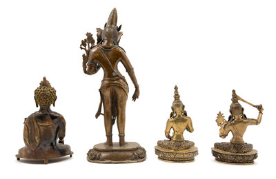 comprising a figure of a seated Buddha, a standing deity and two seated deities.