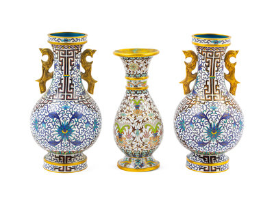 Three Chinese White Ground Cloissoné Enamel Bottle Vases
