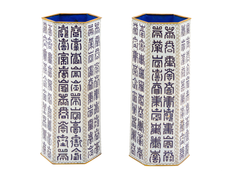 A Pair of Chinese Cloisonné Enamel Hexagonal Vases