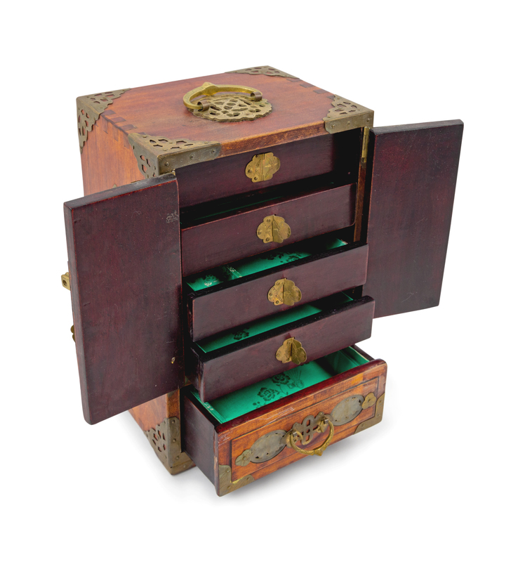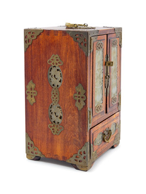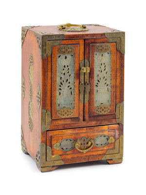 A Chinese Jade Inset Wood Jewelry Box