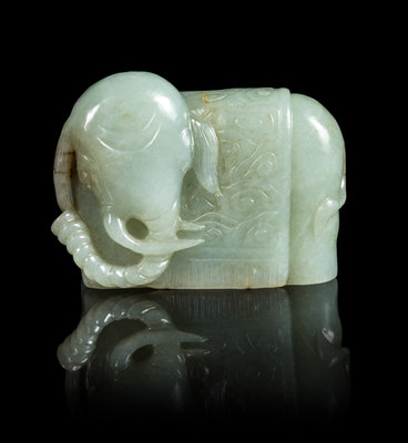 A Chinese Celadon Jade Figure of Elephant