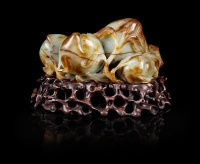 A Chinese and Celadon Jade Peach Group