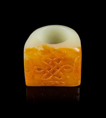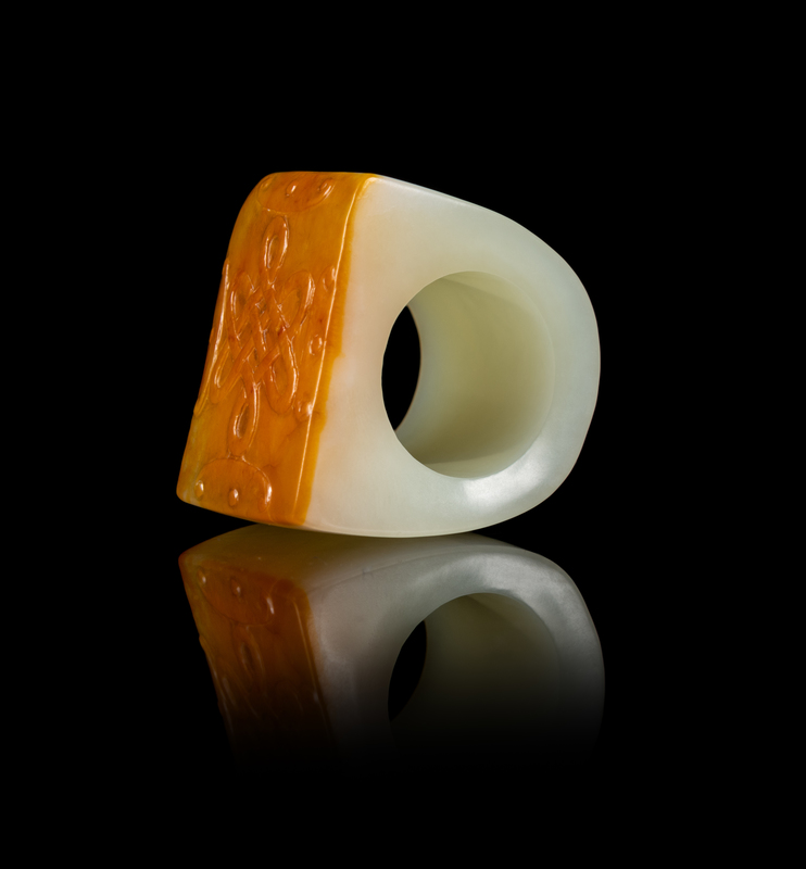A Chinese Russet and White Jade Archer’s Ring