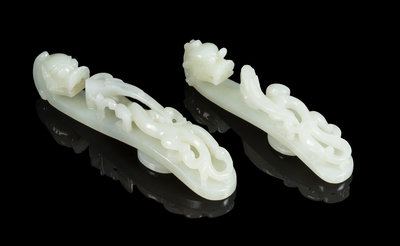 Two Chinese Pale Celadon Jade Belt Hooks