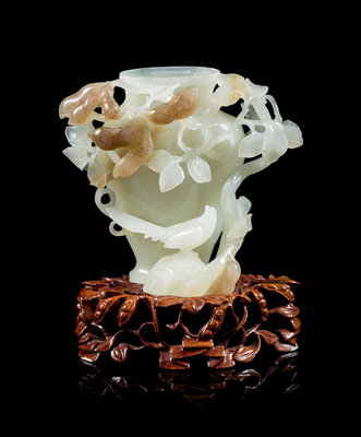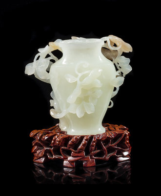 A Chinese White and Russet Jade Vase