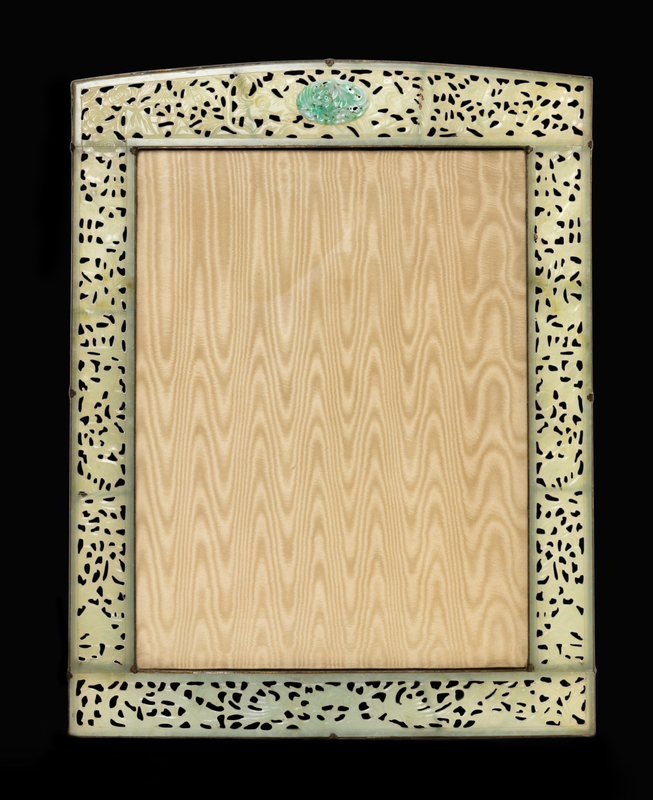A Chinese Carved Jade and Jadeite Inset Picture Frame