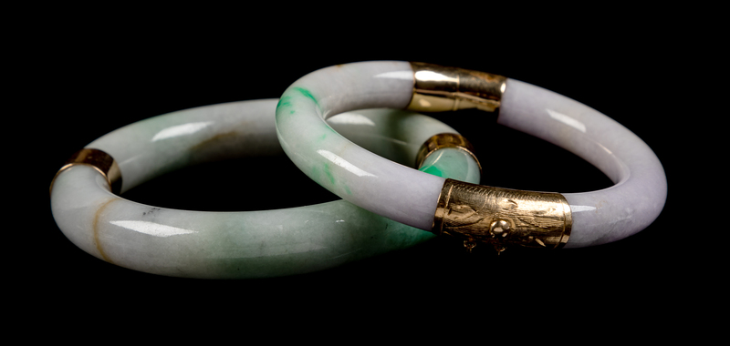 each of cylindrical form, one with 14k yellow gold mounting, the other with 18k yellow gold.
