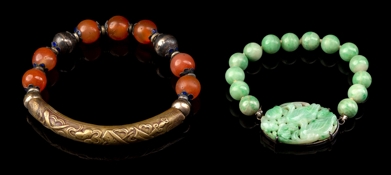 Two Chinese Hardstone Bracelets