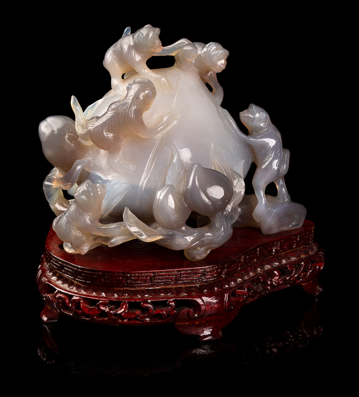 A Chinese Carved Agate 'Monkey and Peach' Figural Group