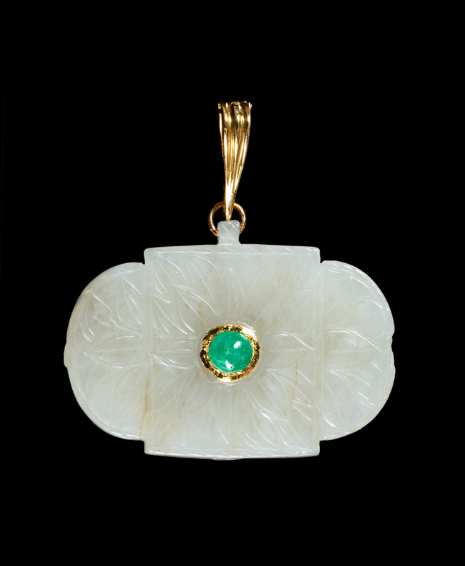 A Chinese Yellow Gold Mounted Jade Pendant