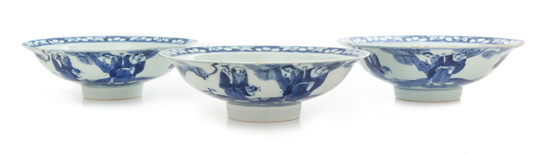 Three Chinese Export Canton Blue and White Porcelain Bowls