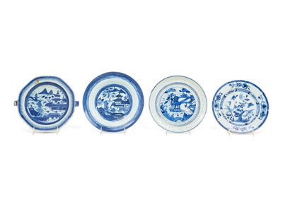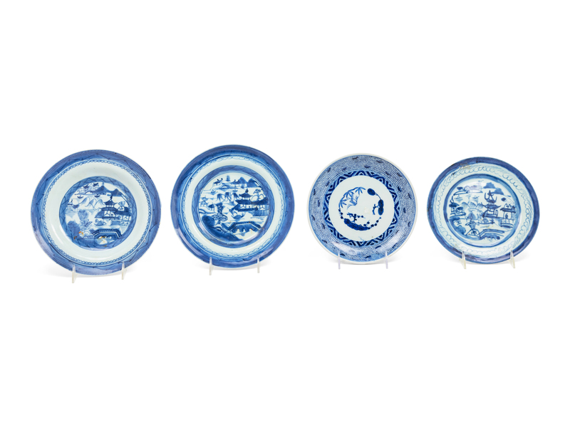 A Group of Eight Chinese Export Blue and White Porcelain Articles
