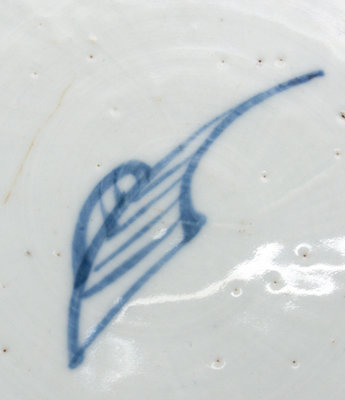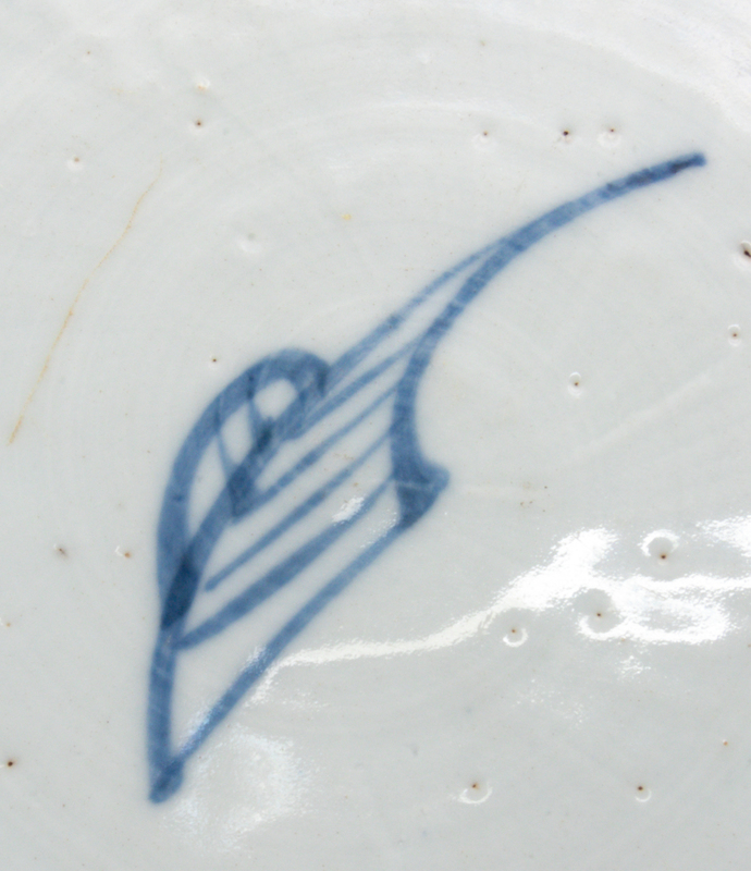 of circular form, the interior painted with foliate decoration, the underside bearing a leaf-form mark.