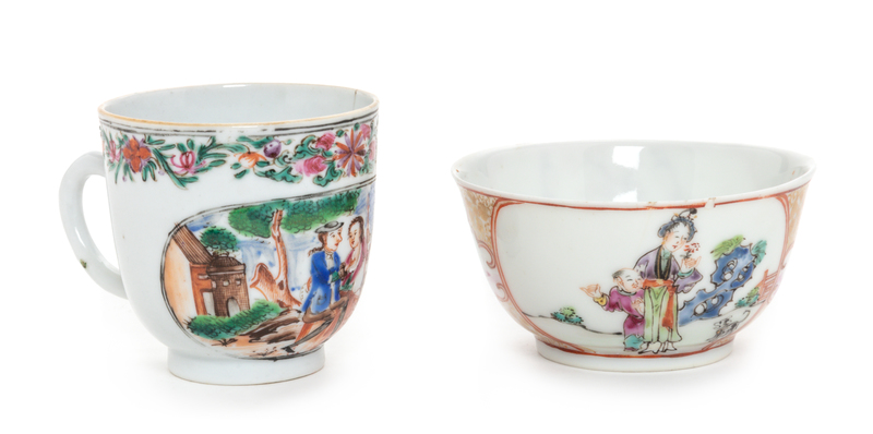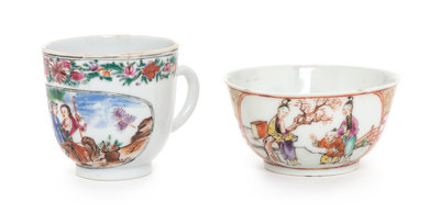 Two Chinese Export Famille Rose Porcelain 'European Subject' Cups
