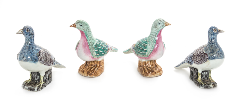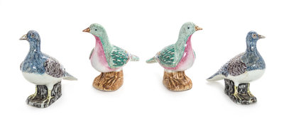Two Pairs of Chinese Export Famille Rose Porcelain Pigeons