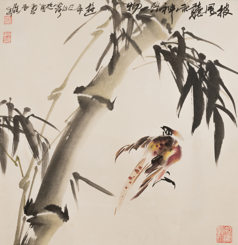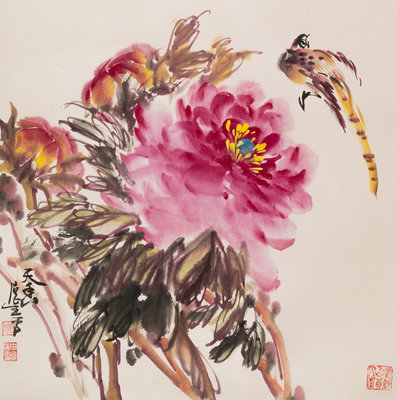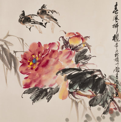 A Group of Three Paintings, Birds, Peonies and Bamboos