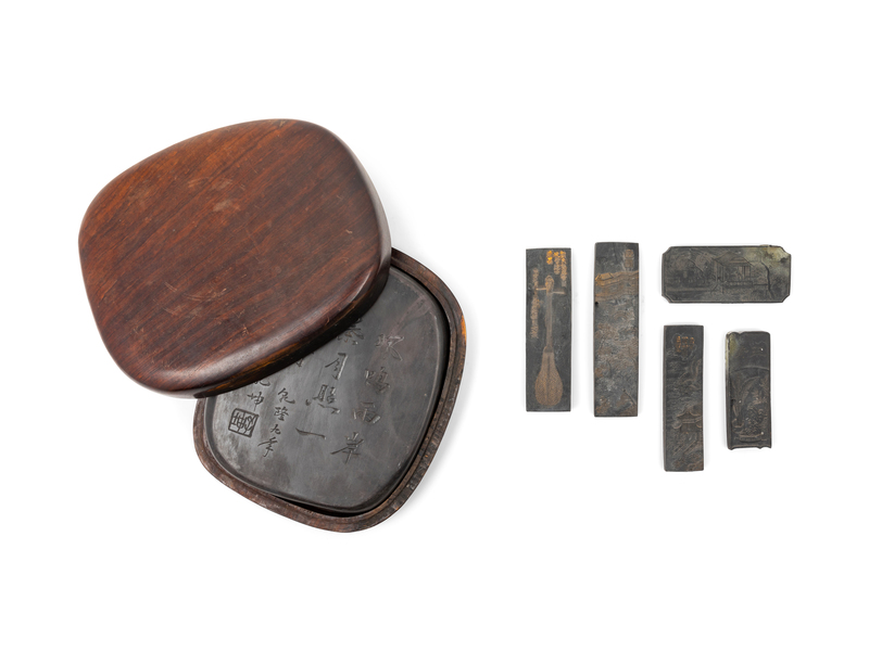 A Set of Five Chinese Inkcakes and One Inkstone Set