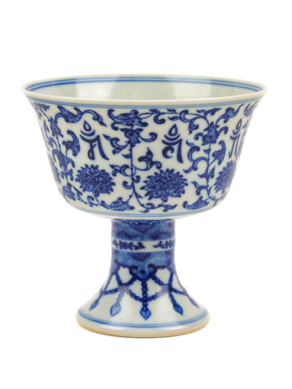 A Chinese Blue and White Porcelain Stem Cup