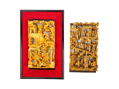 A Group of Four Chinese Gilt and Red Lacquered Wood Panels