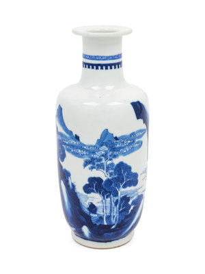 A Chinese Blue and White Porcelain Rouleau Vase