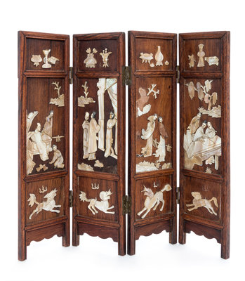 A Chinese Mother-of-Pearl Inset Huali Table Screen