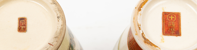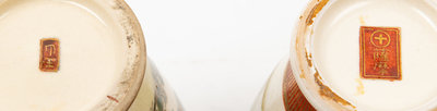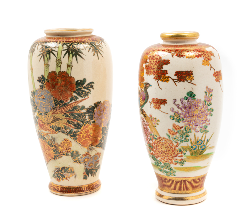 each of tapering ovoid form, painted to show pheasants perched on flowering branches.