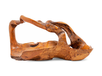 naturalistically carved from a natural section of root with the trunk forming the main receptacle as a tray.