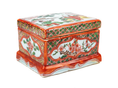 A Chinese Red, Green and Yellow Glazed Porcelain Rectangular Covered Box