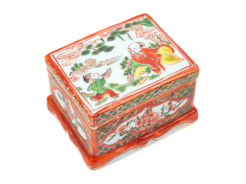 Porcelain Box: 10 length x 6 height x 8 width centimeters, Porcelain Box: 3 3/4 length x 2 3/8 height x 2 7/8 width inches, Bamboo Box: 10 height centimeters, Bamboo Box: 3 3/4 height inches