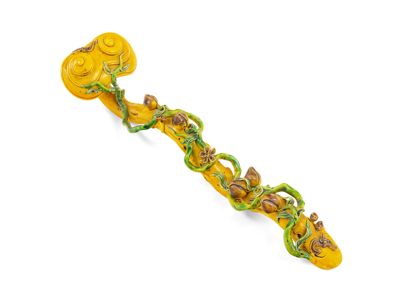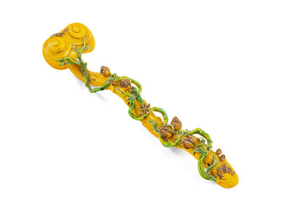 A Chinese Yellow Glazed Porcelain Ruyi Scepter