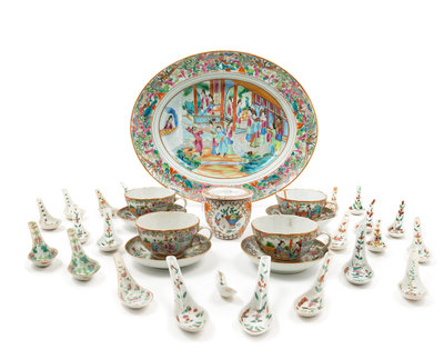 A Group of Chinese Rose Medallion Porcelain Tea Services