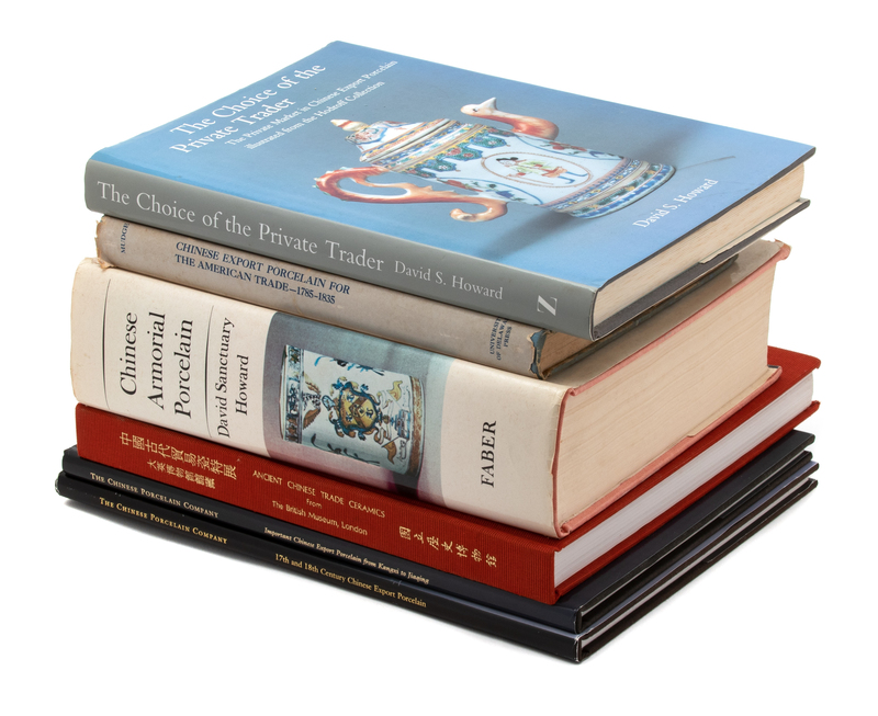 Including: David Sanctuary Howard, Chinese Armorial Porcelain, Faber and Faber Limited, London, 1974; Jean McClure Mudge, Chinese Export Porcelain for the American Trade, 1785-1835, University of Delaware Press, 1962; David S. Howard, The Choice of the Private Trader, Zwemmer, 1974, inscribed by the author; The Chinese Porcelain Company, 17th and 18th Century Chinese Export Porcelain, Pressroom Printer, Hong Kong, 2001, The Chinese Porcelain Company, Important Chinese Export Porcelain from Kangxi to Jiaqing, Paul Art Press, New York, 1999; and Ancient Chinese Trade Ceramics From the British Museum, Chen Kang-Shuen, Taipei, 1994.
