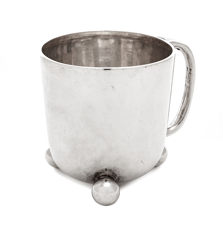 A Victorian Silver Children's Mug, William Hutton & Son, London, 1870, Raised on three ball feet.