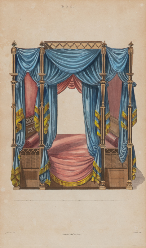 Comprising Bed, French Bed, A Plain Design for a Bed, and A New Design For a Bed,each hand-colored at a later date.