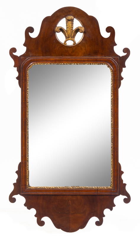 The shaped crest centered with Prince of Wales's feathers above the conforming mirror plate.