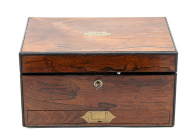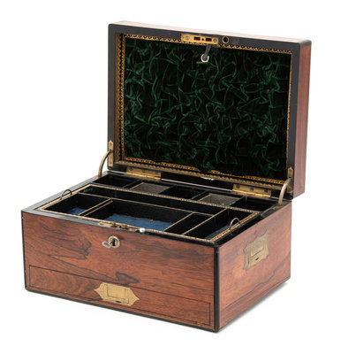 An English Brass-Mounted Rosewood Jewelry Casket