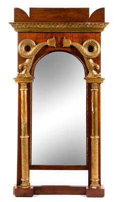 A Regency Parcel Gilt Rosewood and Mahogany Pier Mirror