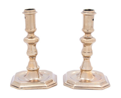 DUTCH, EARLY 18TH CENTURY Each of cylindrical and octagonal baluster form, raised on a canted square base. Height 6 3/4 x width 4 1/4 inches.