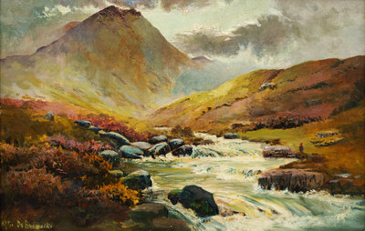 Alfred De Breanski, (British, 1852-1928), Two Works; Untitled (Scottish Landscape with Rushing River), and Scottish Landscape