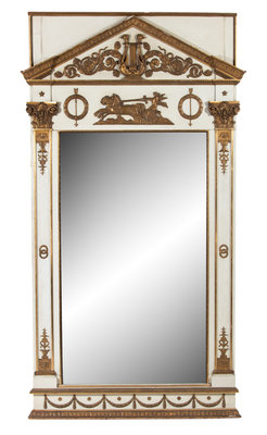 A Continental Empire Parcel-Gilt and Painted Mirror