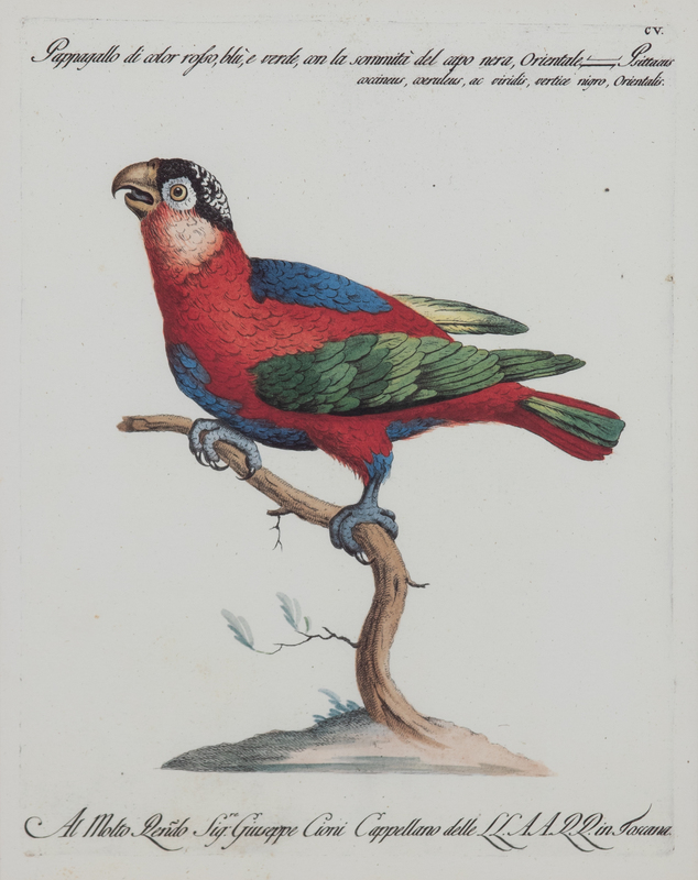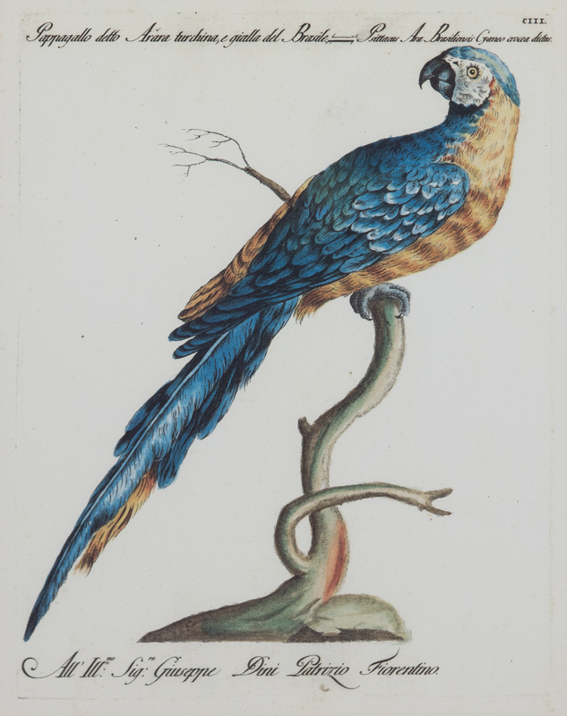 A Pair of Italian Hand-Colored Engravings of Parrots