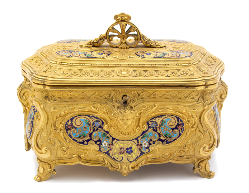 A French Gilt Bronze and Champleve Enamel Jewel Casket