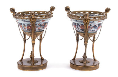 A Pair of French Gilt-Bronze-Mounted Chinese Imari Porcelain Coupes