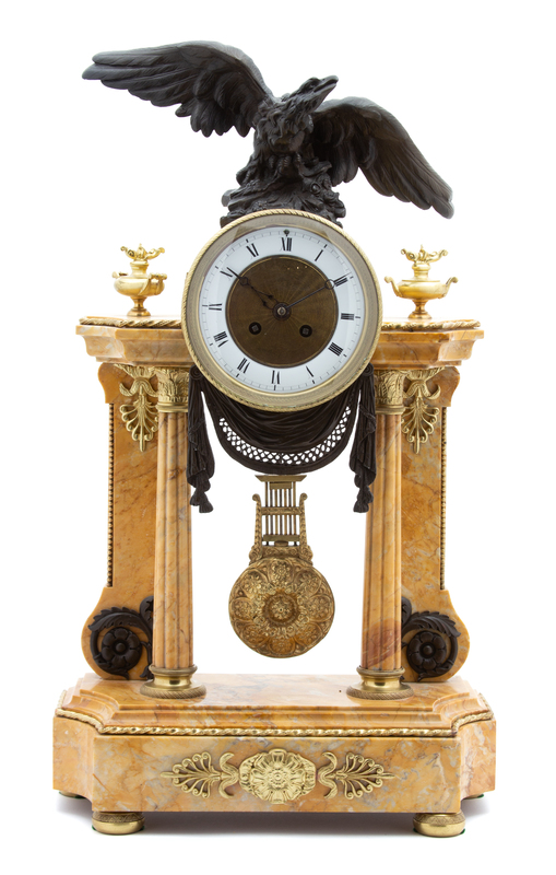 A Louis XVI Style Parcel-Gilt, Patinated Bronze and Marble Portico Clock