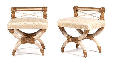 A Pair of Empire Style Parcel-Gilt and Cream-Painted Stools