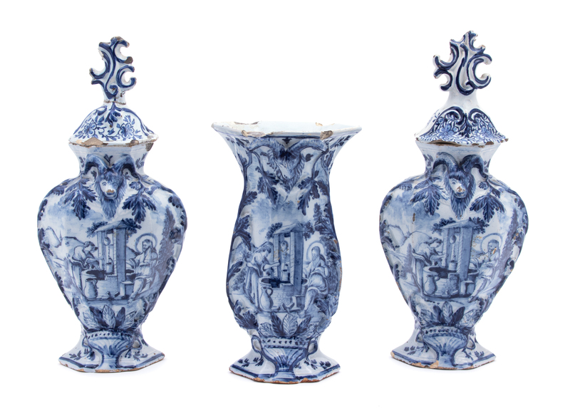 A Delft Tin-Glazed Earthenware Three-Piece Garniture